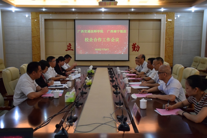 为大力推动学院校企合作有序开展,促进高技能人才合理就业,满足企业人力资源提升需求,7月4日下午,我院在办公楼六楼会议室组织召开校企合作工作会议。广西旅游发展集团副总经理、南宁饭店党委书记、总经理韦贵儒一行五人参加此次会议。院长钟修仁、党委书记古雅明、副院长关菲明及学院相关部门参加会议。会议由副院长关菲明主持。