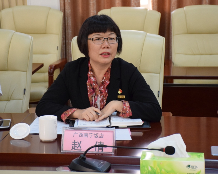 接着,南宁饭店纪委书记、行政总监兼综合部主任赵倩回顾了双方开展校企合作的历程,充分肯定了我院的教育教学成果和人才培养机制。她希望通过此次会议,进一步深化校企合作力度,创新校企合作的模式与途径,深入探索人才合作培养的方式。