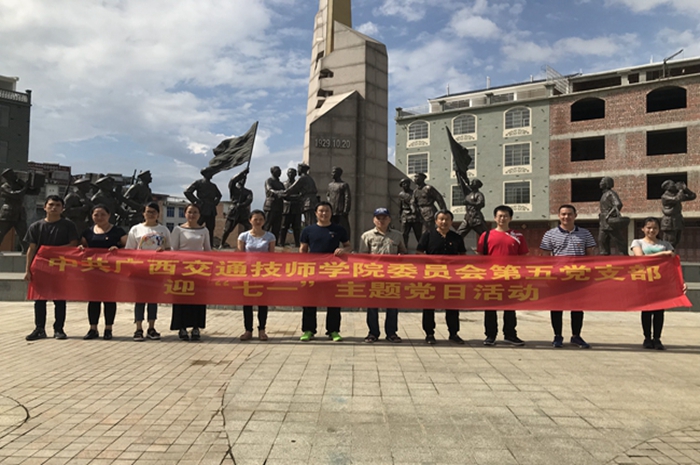 为庆祝中国共产党成立97周年,贯彻落实习近平总书记关于让每一位党员多接受“红色基因”教育,始终“不忘初心”,保持共产党人的本色,自觉继承“红色基因”的讲话精神,在七一党的生日到来之际,近日,我院第五党支部前往革命老区百色田东县进行“提升党性修养,传承红色基因”的革命传统教育党日活动,学习百色起义精神,把革命传统学习教育引向深入,提高我支部党员职工的思想政治素质和业务能力水平,进一步强化党员纪律意识,促进党员领导干部廉洁从政,不断提高党员为民务实的能力。