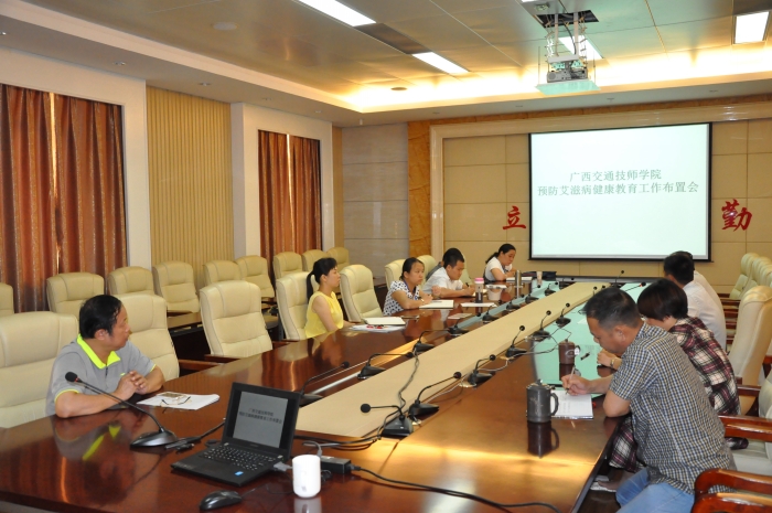 6月27日下午,我院在学院办公楼六楼会议室召开预防艾滋病健康教育工作布置会。副院长蒋斌、院长助理樊海林出席会议,财务科、教务与科研科、学生工作科、后勤服务科、汽车工程系、机电工程系、交通工程系、信息工程系、商务服务系、基础学科部、信息与宣传中心等部门负责人参会,会议由后勤服务科科长陆佳主持。