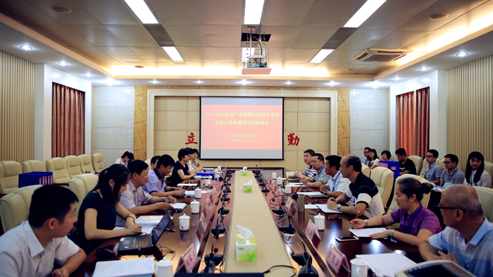 6月15日上午,由蒋贻杰为组长的专家组一行5人来到我院,对我院“2014-2015年度示范特色专业及实训基地建设项目”进行了验收检查。自治区教育厅职称处处长覃壮才、自治区交通运输厅科教处副处长毕雁冰、自治区人力资源和社会保障厅教研室高级讲师陈振成对验收工作进行督导。我院院长钟修仁、副院长关菲明、项目相关负责人以及项目建设相关人员等参加了验收会议。