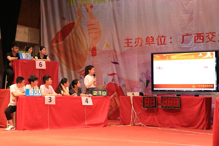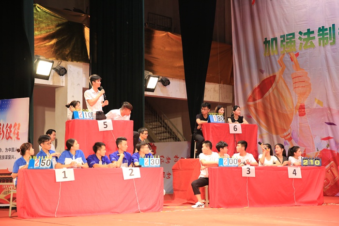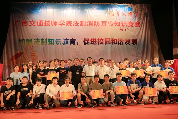 6月6日晚上,我院法制知识竞赛决赛在学院大礼堂成功举行。学院院长钟修仁,学生工作科科长梁勇、副科长方华杰,交通工程系副主任覃甫等到场观看了比赛,并为获奖班级颁奖。