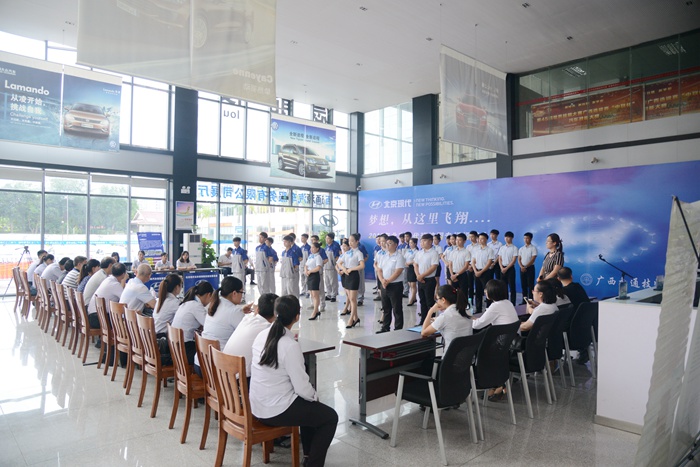 北京现代汽车有限公司广西区域经理石荣,学院副院长关菲明,以及学院汽车工程系、信息商务系系部负责人等出席活动现场。