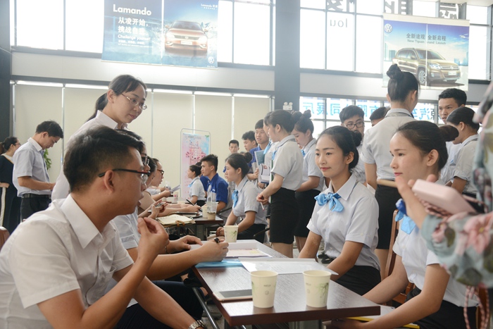 6月6日,我院2018年北京现代班校园专场招聘会在学院汽车4S展厅隆重展开,13家企业代表应邀参加了此次招聘会。学院2017级北京现代机修班和服务营销班共38名毕业生前来应聘,并且全都应聘成功,顺利签订实习岗位。