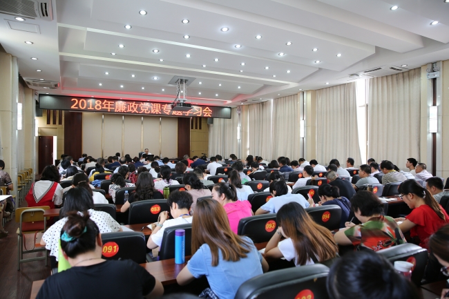为深入学习贯彻党的十九大和全国“两会”精神,推动学院党风廉政建设,2018年5月16日下午,我院在信息中心四楼多功能会议厅召开廉政党课专题学习会议,党委书记古雅明同志给学院全体在职党员、各部门中层正、副职干部上廉政教育党课。