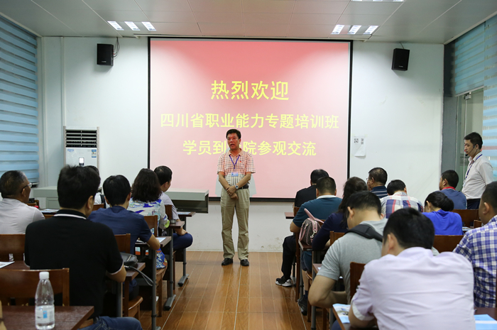 5月15日下午,2018年四川省职业能力建设专题交流培训班成员一行40多人来访我院。我院院长钟修仁、副院长关菲明等热情接待了到访的客人并进行了交流座谈。