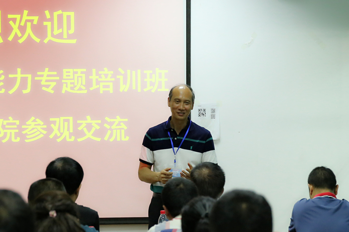 在座谈会上,钟修仁院长首先对交流培训班成员的到来表示了热烈欢迎,并简要介绍了我院的办学成果、学校建设、学生就业等基本情况。随后,关菲明副院长还就我院高技能人才建设和培养、校企合作等情况进行了详细介绍。座谈会上,双方积极交流探讨,气氛热烈。
