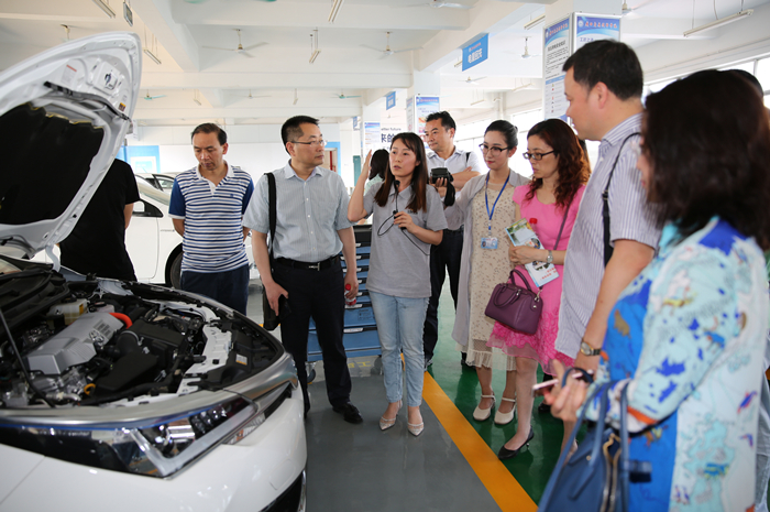 座谈会结束后,在钟修仁院长和关菲明副院长的陪同下,此次交流培训班的成员先后参观了我院汽车4S店营销中心、汽车4S店维修车间、中德诺浩培训基地、玉柴装配实训中心以及信息化教学课堂智创体验中心等教育教学场所,到访人员对我院先进的教学理念和教学设备给予了高度称赞。