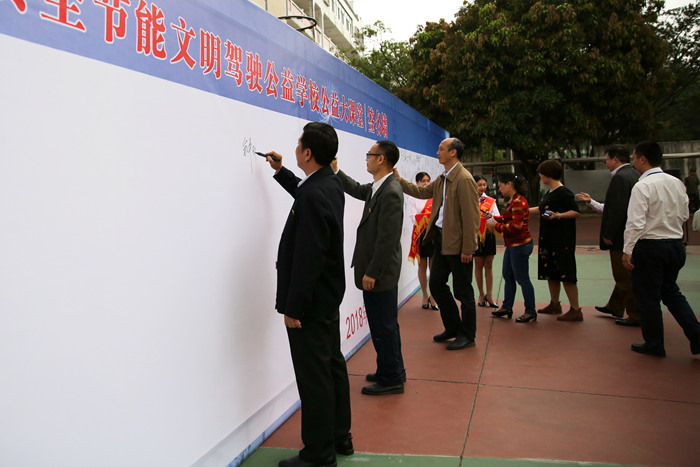 活动最后,在场师生进行了“安全节能文明驾驶”宣誓仪式,并在“我承诺我签字”主题墙上郑重地签上自己的名字,督促自己遵守交通法规,牢记安全理念,维护和谐社会秩序。