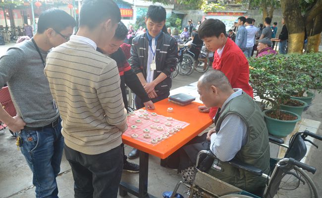 同学们在陪老人下棋