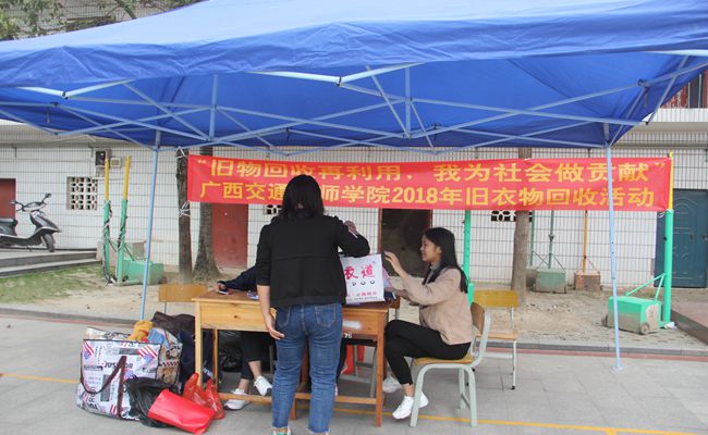 经过前期大力的宣传,全院师生积极响应,早早就准备好了大包小包的旧衣物准备捐赠,大家对于活动热情高涨。旧衣物回收后,将交由相关公益组织进行处理,其中干净、较新的衣服,经消毒除菌、包装后捐赠给广西区内的残疾人、困难群众,不适合捐赠的衣物由指定的环保公司进行分解加工,生产再生棉等再生物品,除去开支后将剩余费用用于广西残疾人慈善公益事业。