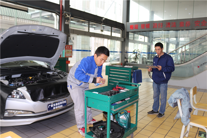 1月17日,我院17级北京现代维修班迎来了入学第一个学期的期末考试。为了继续深化“产教结合,校企合作”的方针政策,本次考试邀请了广西北京现代鑫广达店和通源店的技术总监和班组长四位专家进行考评。