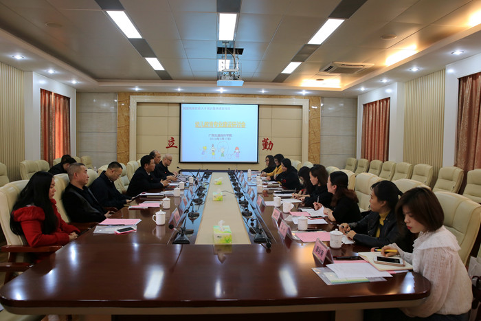 为了进一步加强幼儿教育专业建设,培养出高水平的幼儿教育人才,我院于1月17日下午在办公楼6楼会议室举行了“幼儿教育专业建设研讨会”,全国资深幼儿教育专家商娓娓,广西幼儿师范高等专科学校教学部主任副教授张文军等10名专家应邀出席本次研讨会。学院院长钟修仁,党委书记古雅明,副院长关菲明以及相关部门负责人、幼儿教育专业骨干教师等参加本次研讨会。会议由商务服务系主任封桂炎主持。