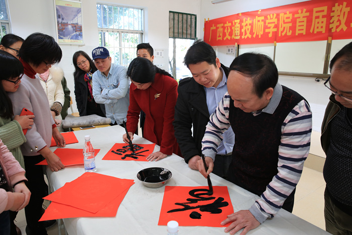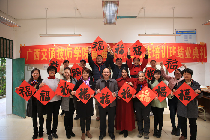 为丰富我院教职工文化生活,进一步传承和发扬书法这一中华民族传统文化瑰宝,同时培养一批书法课程教师,学院决定于2017年11月开设教职工书法培训班。经过两个多月的学习,培训班的23名学员于2018年1月12日顺利结课,并在求学楼104教室举行了学员书法作品展示暨结业仪式。我院院长助理樊海林,著名书法家黄大业先生、冯蕊女士及培训班学员出席了结业典礼。