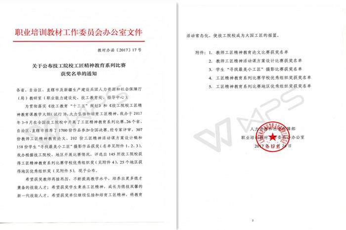 我院师生在全国技工院校工匠精神教育系列比赛中喜获佳绩