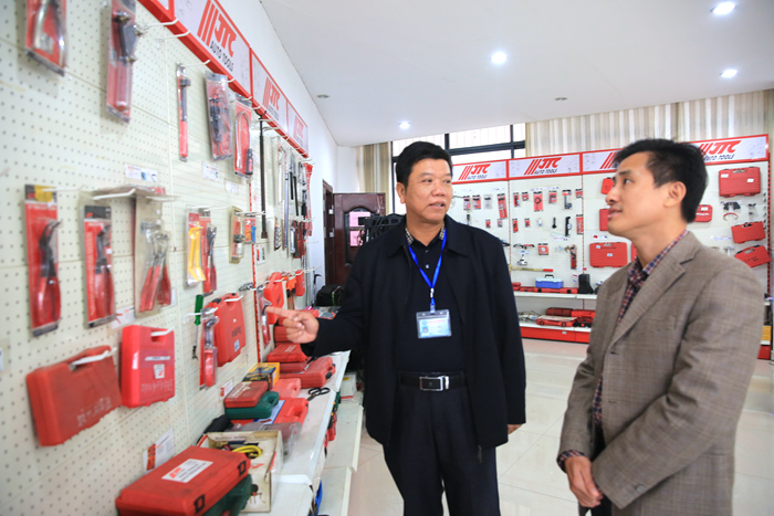 钟修仁院长陪同黄创优局长(右一)参观我院大师工作室