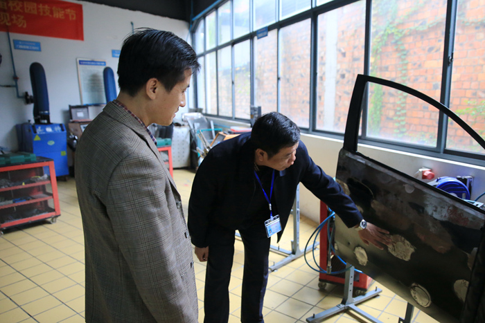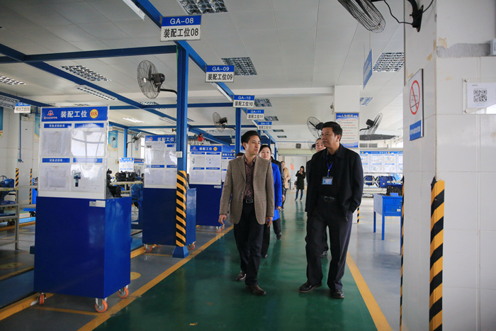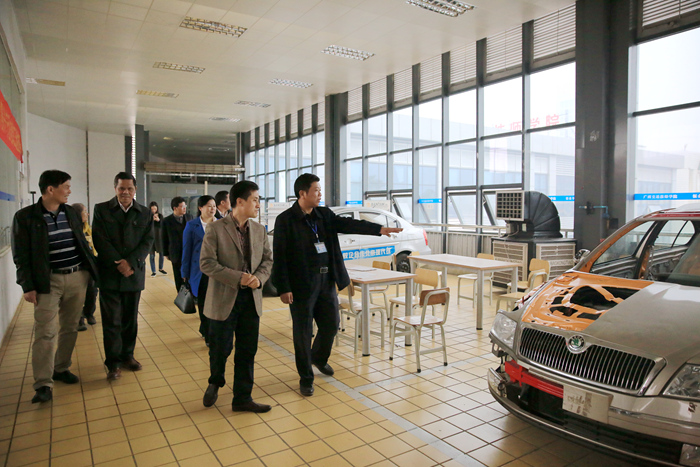 黄创优局长一行实地参观了我院动车实训室、大师工作室、汽车4S实训中心、汽车性能与排放测试实验中心、玉柴发动机实训中心等教学实训场所,深入细致地了解我院的教育办学、师资力量、基础设施建设、毕业生就业等情况。