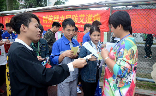 工作人员宣传防艾知识