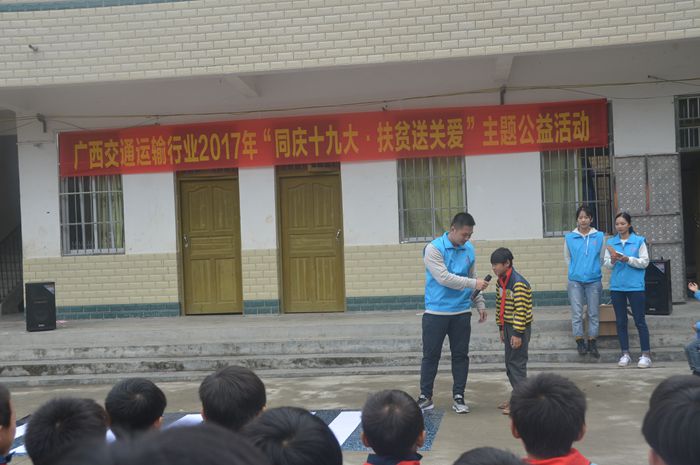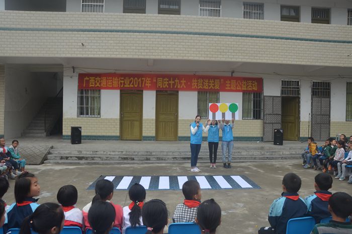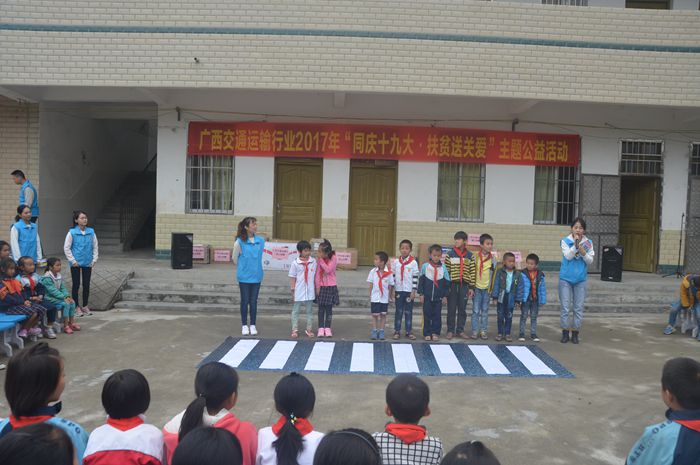 为深入学习贯彻习近平总书记系列重要讲话精神,让广大青年在社会实践中受教育、长才干、做贡献,11月9日至10日,我院由孙广福、李宣葙、陈杨、潘鑫、马舒娴和韦林英六名老师组成的志愿者服务队奔赴自治区交通运输厅扶贫工作联系点所在地罗城县东门镇德音村小学开展2017年 “三下乡”社会实践活动。