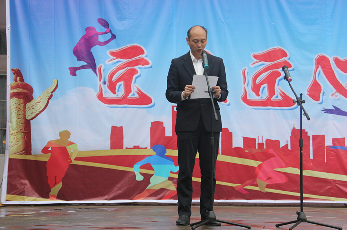 学院党委书记古雅明在长堽校区宣布运动会开幕