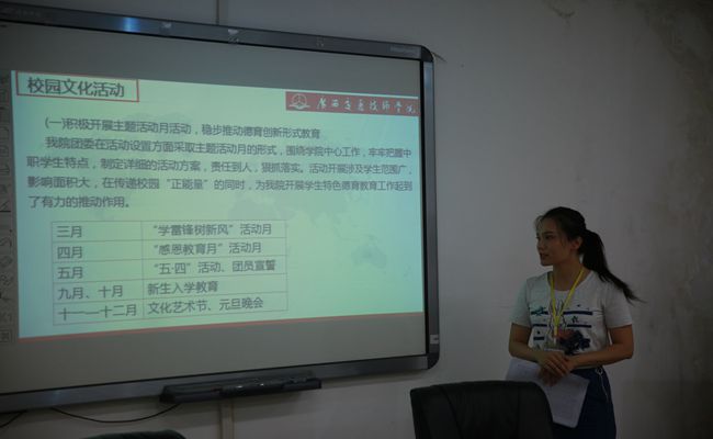 首先由院长助理樊海林同志介绍了学院的基本发展情况,他希望各行业和各级团组织能对我院团建工作多进行交流和指导,并希望本次调研检查能顺利圆满完成。随后,由学生工作科副科长、团委书记李姜春同志从团建、社团和德育工作等几个方面向检查组汇报了我院近几年的工作成果。在检查过程中,农副局长对我院团委的工作给出了高度的肯定,他希望今后的工作不单停留在表面,要突出精品和亮点,充分利用各种资源,不断完善和提高团组织的各项工作。