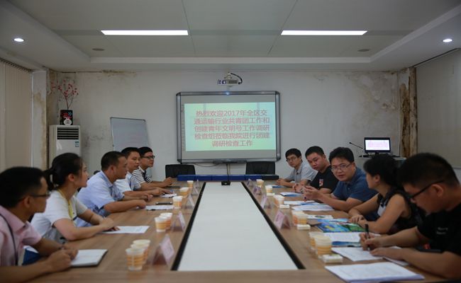 9月25日上午,广西交通运输厅检查小组到我院进行2017年全区交通运输行业团建工作和创建青年文明号工作的调研检查,本次巡检由自治区公路管理局副局长农正定担任组长、自治区北部湾港口管理局团委书记秦佳担任副组长,组员包括自治区高速公路管理局团委副书记黄文峰和自治区运管局团委委员唐卫,自治区道路运输管理局团委书记莫宽文陪同检查。