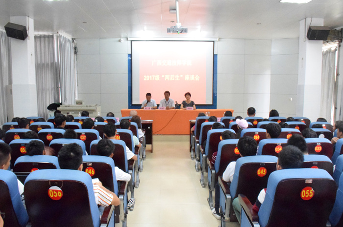 座谈会首先由2017级"两后生"班班主任苏啟棠老师对班级情况做了详细汇报。我院今年招收“两后生”78名,其中男生64名,女生14名,分别来自乐业、那坡、西林、靖西县等4个县份。现就读汽修专业的有52人,幼教专业15人(13名女生、2名男生),烹饪类专业的有8人(西式面点7人,有1名女生),工程机械专业3人。