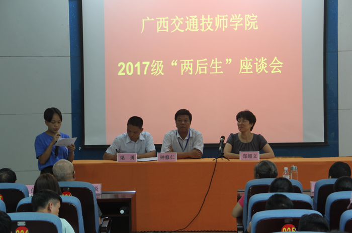 9月15日,我院2017级“两后生”座谈会在求知楼阶梯教室召开。会议由学生工作科科长梁勇主持,院长钟修仁、院长助理郑超文参加会议。