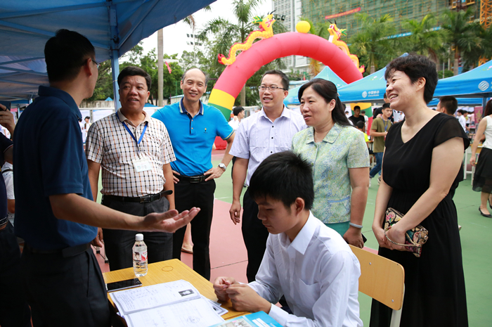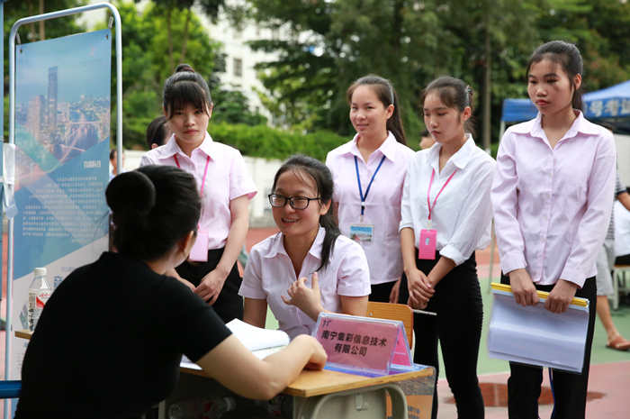 “双选会”期间,自治区人力资源和社会保障厅职业能力建设处处长杨春华、副处长覃朝俊,自治区就业局人力资源市场科副主任科员刘绵冬、职业介绍部副部长欧一鸣,我院院长钟修仁、副院长关菲明、院长助理郑超文以及相关部门负责人等都来到“双选会”现场,了解用人单位情况,指导推荐学生就业实习。
