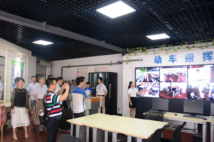 参观前,来访的一行人在我院求知楼阶梯教室观看了我院宣传短片,简要了解我院的发展历史。随后,来访人员饶有兴致地参观了我院大师工作室、汽车4S实景教学基地、玉柴发动机实训中心、中德诺浩班日常教学基地、汽车一体化实训中心等教育教学场所,并对我院的基础设施建设和所取得的教育教学成果给予了高度赞扬。