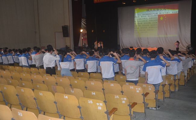在我院团委杨霜老师的带领下,青年学生佩戴成人宣誓纪念章,紧握右拳,面对国旗庄严宣誓:今天,面对国旗我庄严宣誓,我已长大成人,永远做祖国忠诚的儿女……天地为鉴,国旗为证,十八而志,青春万岁!