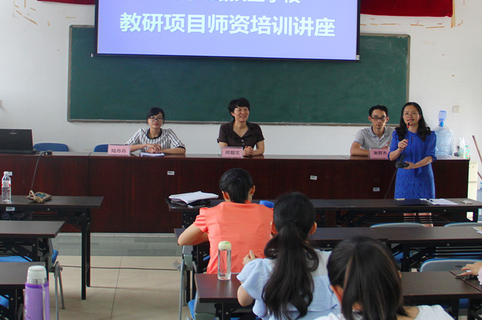 5月17日下午,应长堽校区教务科的邀请,学院院长助理郑超文带队,与信息与商务系谢群杰、教务与科研处陆丹丹两位教师到长堽校区办公楼一楼多媒体教室开展教研项目师资培训讲座。讲座由长堽校区教务科科长周爱鹏主持,共有50名教师参加培训。