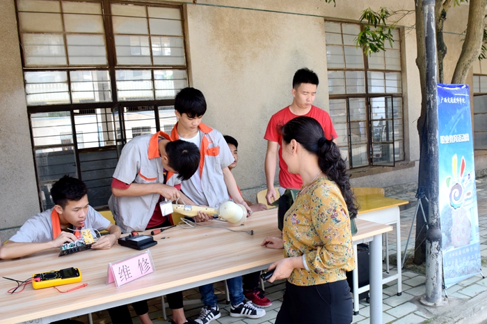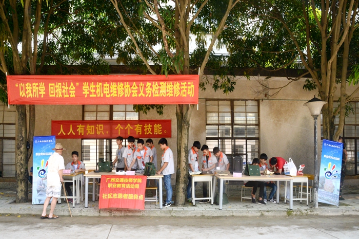 5月11日下午,我院机电维修协会在学院二区岗亭旁开展“进社区、进社会”志愿服务活动,义务为学院教职工们检测家用电器的故障并进行维修。