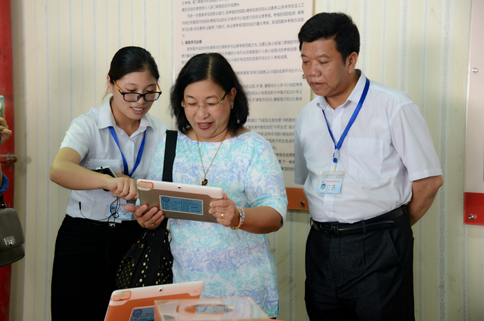 国际劳工组织亚太局专家卡梅拉·托雷斯(中)参观我院物流管理专业“智慧课堂”