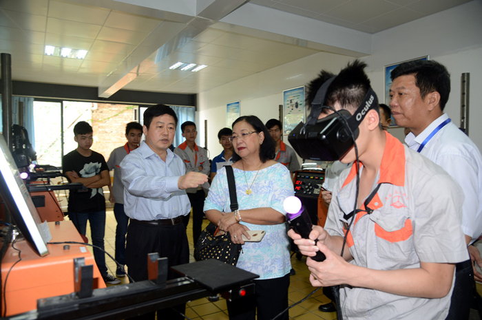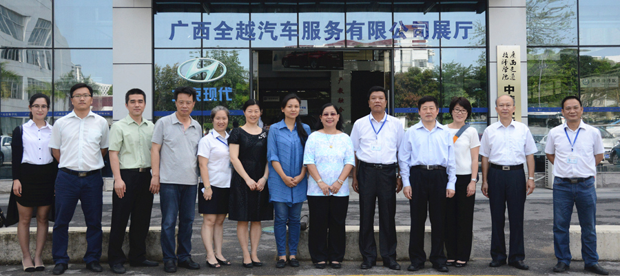 作为国家重点、国家示范学校,国家级高技能人才培训基地,我院一直秉持“依托交通、校企交融、重德强技、服务行业”的办学宗旨,实现了专业建设与行业发展深度对接,教学内容与岗位标准深度对接。近年来,学院积极拓宽学生就业渠道的同时充分发挥行业优势,为广西汽车行业培养和输送了大量中高级技能人才。自治区人社厅引进国外智力处处长、自治区外国专家局副局长汪靓,自治区人社厅引进国外智力处副处长孙永超,自治区人社厅就业促进处副调研员吴骏强,自治区交通运输厅科教处副调研员张迎春,自治区道路运输管理局党委书记罗华以及我院院长钟修仁、院长助理樊海林等陪同调研。