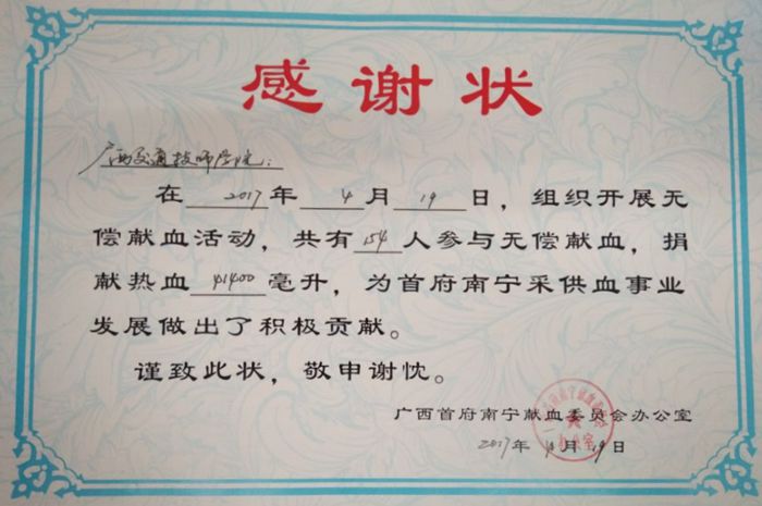 活动结束后,血站的医务人员纷纷表示他们对这天的无偿献血工作非常满意,学校各部门配合得很好,服务非常到位;学生的献血热情十分高涨,表现出了可嘉的勇气和极高的素质。