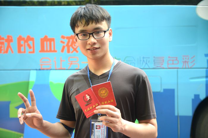 14检高9班的梁燕鹏同学在采访中说道:“这已经是我第二次参与献血了,如果能用自己的鲜血去挽救一个人的生命,这是一件无比光荣的事,下次我还会再来献血的!”