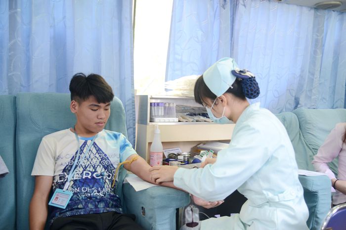 活动期间,前来献血的师生络绎不绝,现场一片爱心涌动。在领取献血表处,献血者们井然有序地排着队,志愿者们积极为参加献血的同学发放献血登记表,讲解献血须知;在体检处,为了确保同学们安全献血,医护人员会在献血前给每一位献血者进行严格的体检;在献血车上,正坐着的几位刚刚抽过血的同学,他们表情自如,谈笑风生,脸上都洋溢着一份献血光荣的骄傲神情。整个活动现场充满了关爱、热烈而有序的氛围。