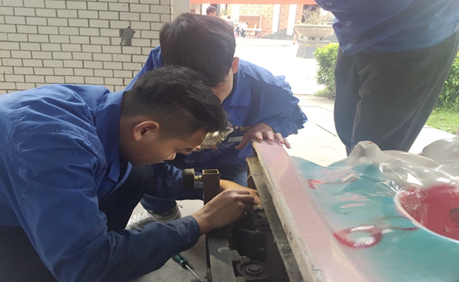 8点50分,同学们来到了活动现场,挂起服务旗,张贴服务内容,摆放好工具箱。虽然天气阴沉,但丝毫没有影响同学们的心情。大家为前来咨询的居民们热心的解答关于家电及车辆故障的疑问;居民们从家里拿来各种出故障的小家电,点唱机、电磁炉等等,有的还从车棚拉来了电动车。同学们利用所学知识一边为居民们进行家电检测,电动车修理,一边给居民们讲解家电和车辆的日常保养知识,忙得热火朝天。