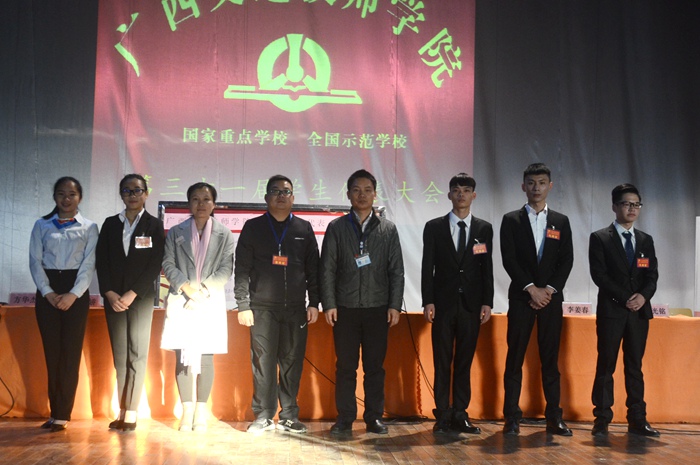 大会还听取了第三十届学生会工作报告,并选举产生了赵光铭、覃广娇、韦颖程、陆吉龙、许小倩5名同学为新一届主席团成员。
