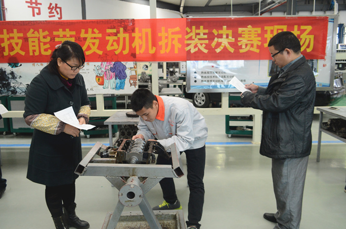 学院关菲明副院长在开幕式上表示,从近年的企业选拨、用人形势来看,有着较高的理论和知识素养、较强动手能力的高技能型人才越来越受到社会的热捧,需求量日益增大。学院领导非常重视学生们的操作技能训练,积极成立不同种类、不同层次的兴趣小组,开展第二课堂和技能竞赛活动,并取得了可喜的成绩。在近期结束的2016年中国技能大赛暨第44届世界技能大赛国家选拔赛中,我院的马才文同学凭借过硬的技术本领和稳定的心理素质在众多选手中脱颖而出,进入了汽车技术项目国家集训队。第44届世界技能大赛将于2017年10月在阿联酋阿布扎比举行,马才文同学近期将赴杭州参加集训,与全国其他9名汽车技术项目选手角逐进军阿布扎比的机会。关菲明副院长希望参加此次校园技能比赛的同学们能充分发挥自己的聪明才智,沉着、认真对待每一项赛程,把握此次切磋技艺、展示水平的好机会,不断激励自我成长、提升人生价值。