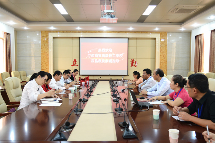 11月7日上午,广西商贸高级技工学校党委副书记任其江、校长助理黄红波带领该校办公室、学生科、人事科等部门负责人一行6人来访我院。我院院长钟修仁、院长助理樊海林以及各相关部门负责人参加了座谈交流会。