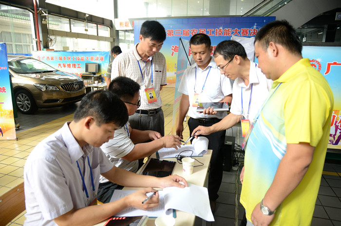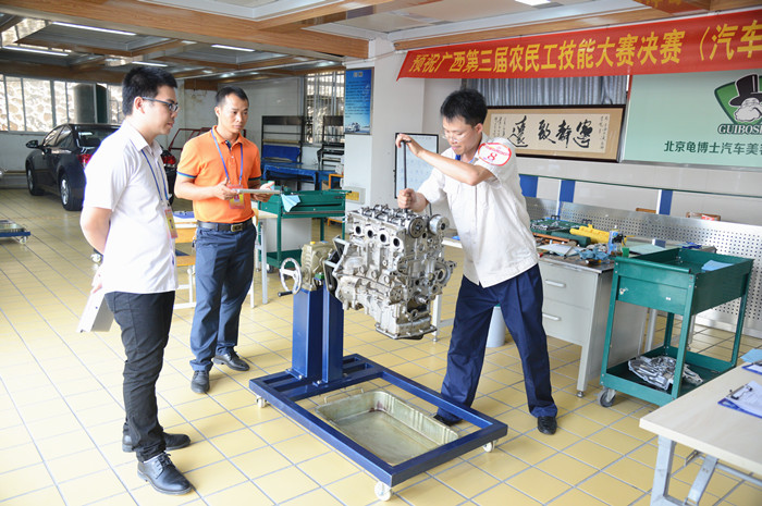 据悉,广西农民工技能大赛已经成功举办了三届,其中汽车修理工赛项是首次进入比赛,即有满额选手参加总决赛。此次大赛的参赛选手都发挥了较高的水平,展示了汽车修理工的良好精神风貌、过高的业务素质和专业的技术水平。
