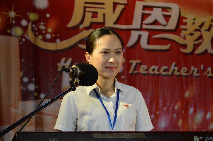 大会随后由学院党委书记罗华宣读表彰文件。学院汽车系老师梁华作为优秀教师代表发言。此次大会对2015-2016学年优秀教师和优秀教育工作者进行了表彰,共评出优秀教师36名,优秀教育工作者35名。