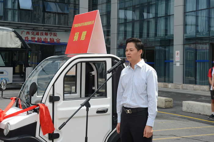广西森宝电动汽车制造有限公司在现场向我院捐赠了新能源汽车