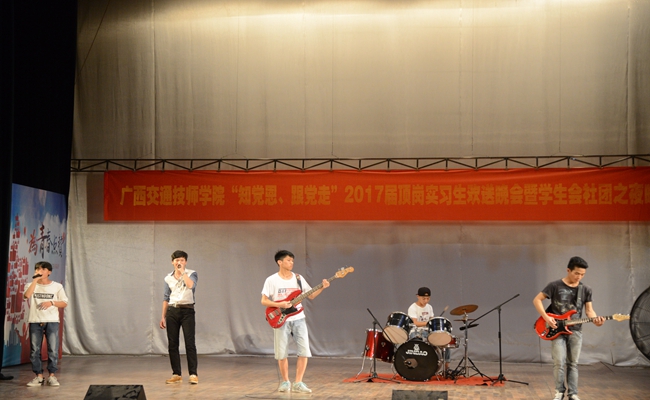 6月29日晚上,“知党恩、跟党走”2017届顶岗实习生欢送晚会暨学生会社团之夜晚会在学院礼堂举行。学院党委副书记张健生、院长助理谭劲涛、学生工作处副主任毛华剑以及毕业班代表和全体社团成员共同观看了晚会。