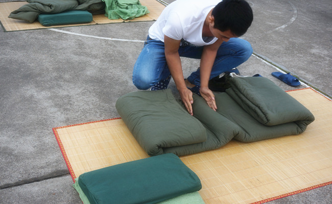 为进一步增强我院高峰校区学生自理自立能力的意识,进一步提高学生内务整理能力,养成良好的生活习惯,同时响应我院军事化管理的号召,高峰校区特举行“文明宿舍,我爱我家”为主题的叠被子比赛。