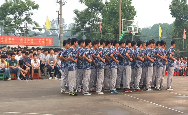 接着,领导们观看了15级学生的队列汇演比赛。各班同学都激情澎湃的向全校师生展示他们一个多月的努力训练成果。经过2个小时精彩的汇演,评审团的公正打分,最后,有7个班级获得“作风过硬连”称号。