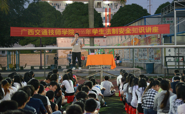 为了营造良好的法制教育环境和氛围,增强学校推进法制教育的实效性,教育学生养成良好的法制观念、树立良好的法律意识,4月28日晚,我院学生工作处邀请邕武派出所黄文力警官到我院开展法制安全知识讲座。