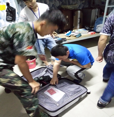 学工处老师在认真检查行李箱